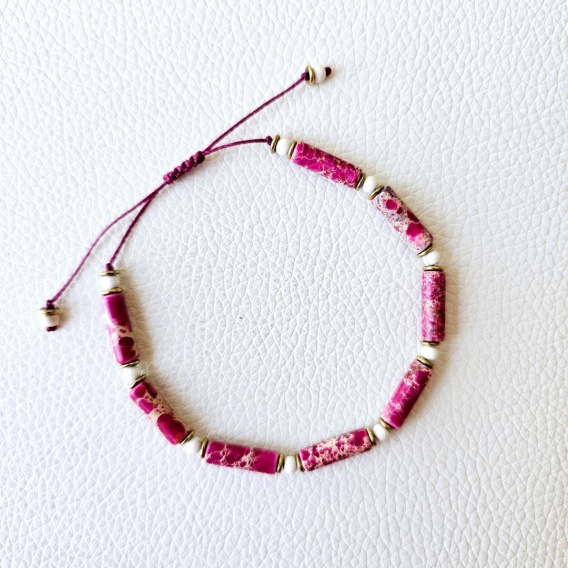 Bransoletka na nici jedwabnej z jaspisem cesarskim